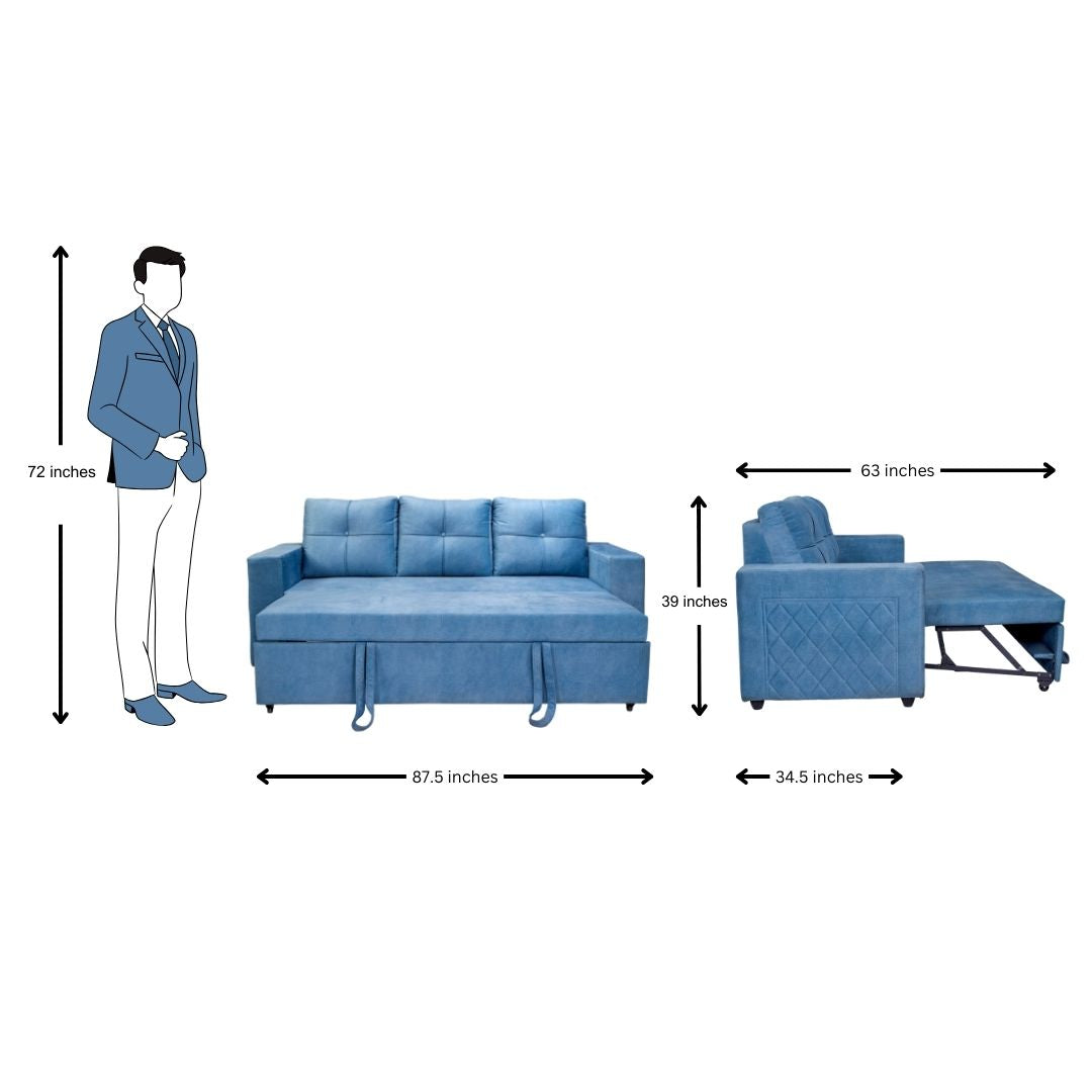 Budapest Pro Premium Fabric Sofa Cum Bed - Blue