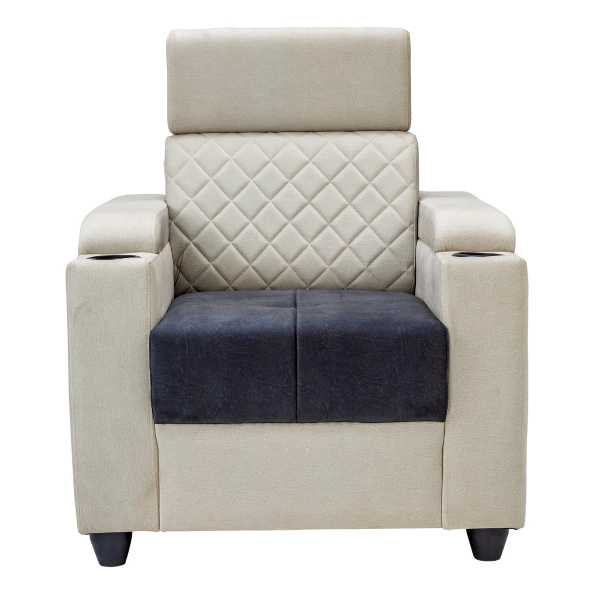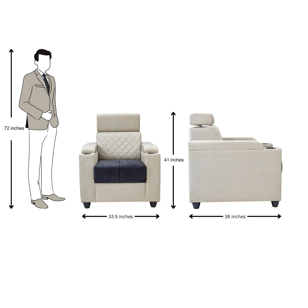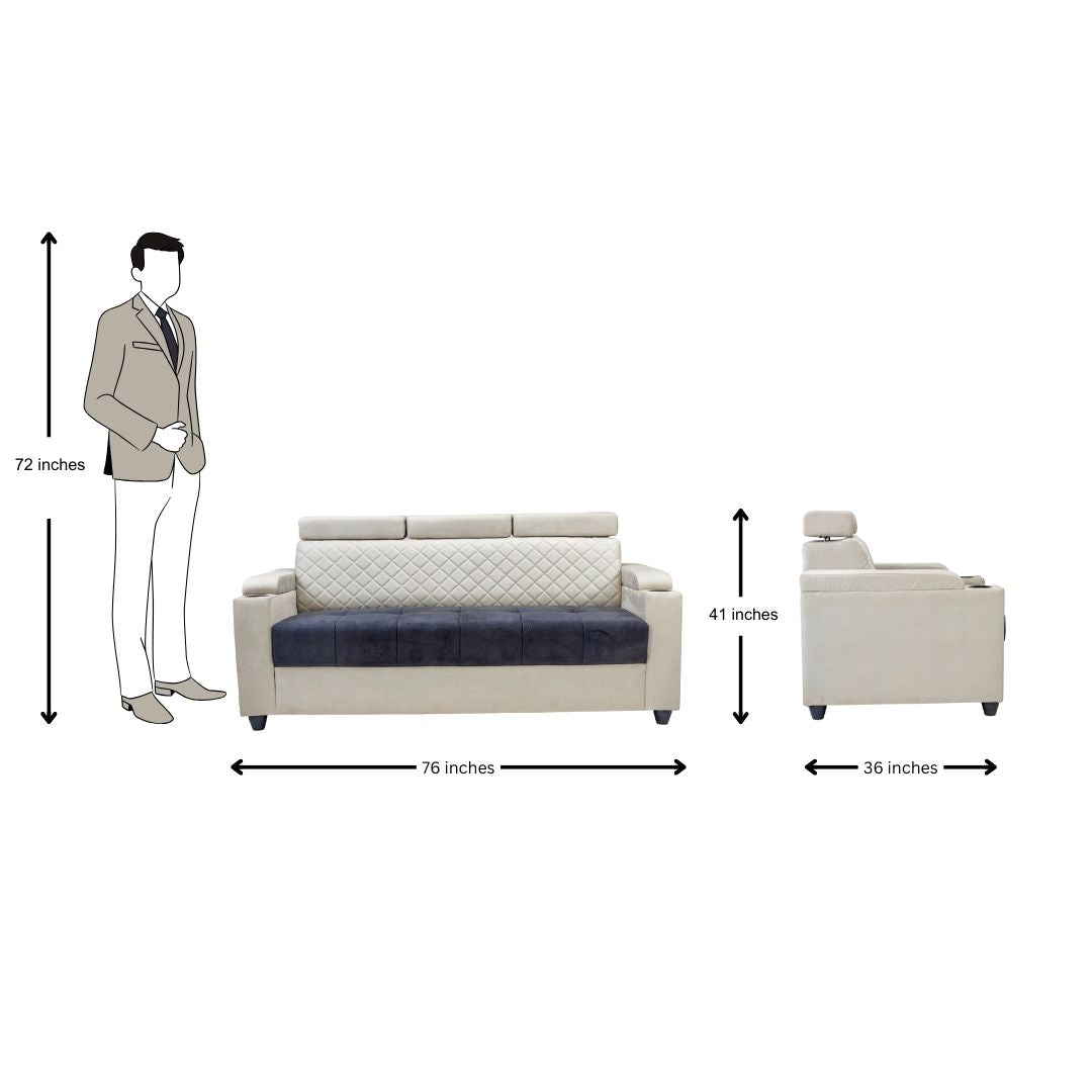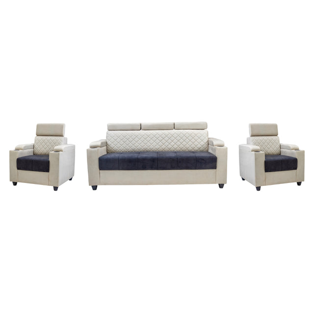 Denver Pro Head Rest Fabric Sofa Set (3+1+1 Seater) - Half White and Grey