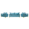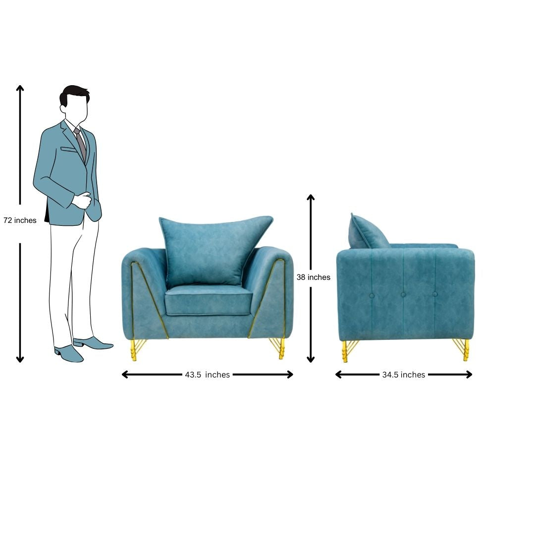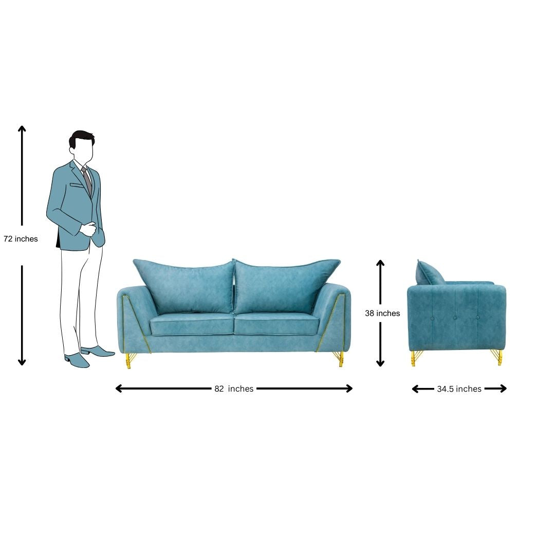 The Estonia Sofa Set blends timeless elegance with everyday comfort, making it a perfect addition to modern and contemporary interiors. Built on a sturdy solid wood and plywood frame, it offers lasting support and durability. The high backrest, plush PU foam and Recron filling ensure excellent posture and comfort for long hours of relaxation. With two one-seaters and one three-seater, it provides ample space for family and guests. Upholstered in soft, breathable polyester fabric with a velvety texture, it is easy to maintain and ideal for daily indoor use. Pleated fixed armrests and gold wire legs elevate its aesthetic appeal, turning it into a stylish centerpiece. Offering premium quality in a budget-friendly range, the Estonia Sofa is a smart choice for cozy gatherings, lounging, or elegant entertaining, backed by lasting performance and luxurious charm.