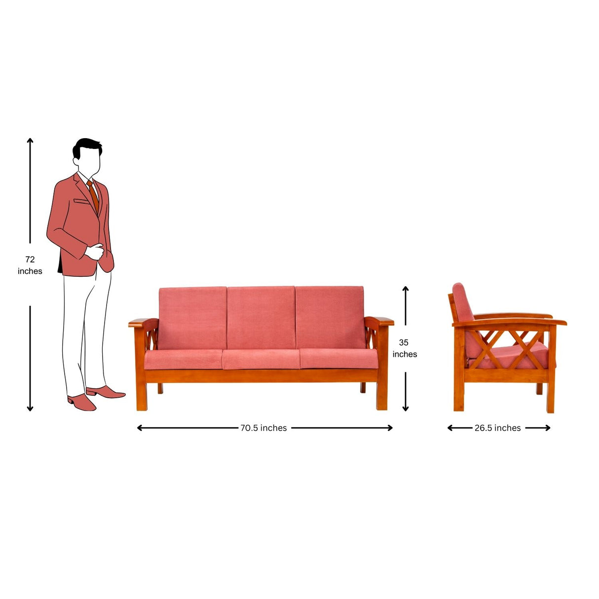 - 3-Seater Dimensions (DXWXH) in