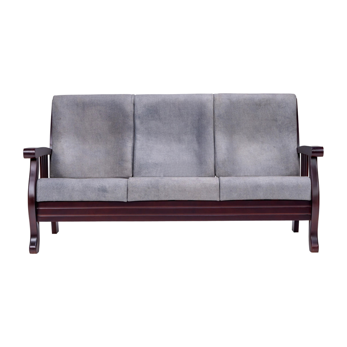 The Indiana Wooden Sofa blends classic craftsmanship with modern comfort. Constructed from durable mahogany, it offers a strong, long-lasting frame that is elegant and functional. The high-back design provides excellent support, ensuring relaxation, while the cabriole leg style adds a timeless aesthetic. Upholstered in premium micro fabric, it is soft, breathable, and cozy. Filled with high-density moulded foam, the seat and backrest provide firm support and long-lasting comfort. Ideal for indoor use in living rooms, lounges, or reading nooks, it enhances any decor with its semi-glossy finish and fixed square armrests. Removable cushions offer easy maintenance, and it seats three comfortably. Soft floor surfaces are recommended for compatibility with various floors. With a sturdy structure, a 12-month warranty, and a sophisticated design, the Indiana Wooden Sofa is a durable, luxurious, budget-friendly choice for any home.