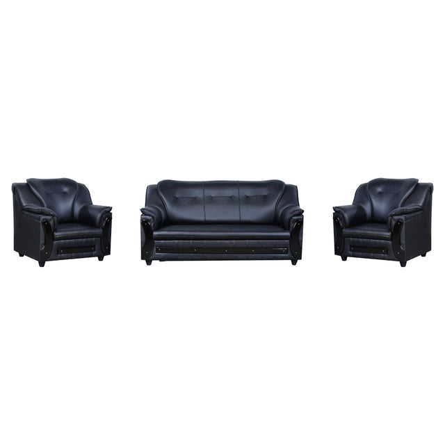 Kassel Rexine Sofa Set (3+1+1-Seater) - Black