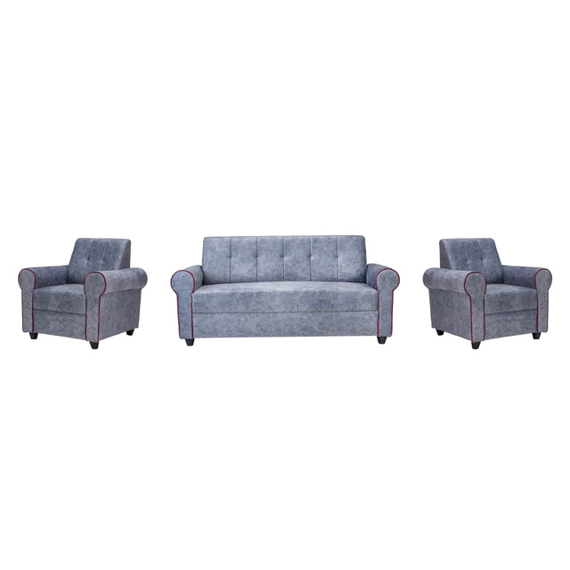 Madrid Pro Deluxe Rolled Arm Fabric Sofa Set (3+1+1 Seater) - Light Grey