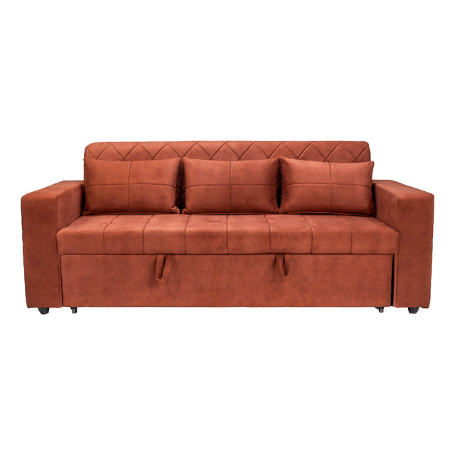 The Shanghai Sofa Cum Bed blends functionality, comfort, and refined style, making it a smart choice for modern homes. Built with a strong mahogany and plywood frame, and filled with premium PU foam, it offers both support and relaxation. Its fixed square arms, midback structure, and pullout bed design make it ideal for lounging or accommodating overnight guests. Upholstered in smooth, durable PU material with three toss pillows included, it ensures luxury and ease of care. Fixed cushions and sturdy PVC bush legs add to its stability and longevity. A perfect budget-friendly solution for living rooms or bedrooms, this sofa cum bed offers premium comfort and practical versatility in a compact, elegant form.
