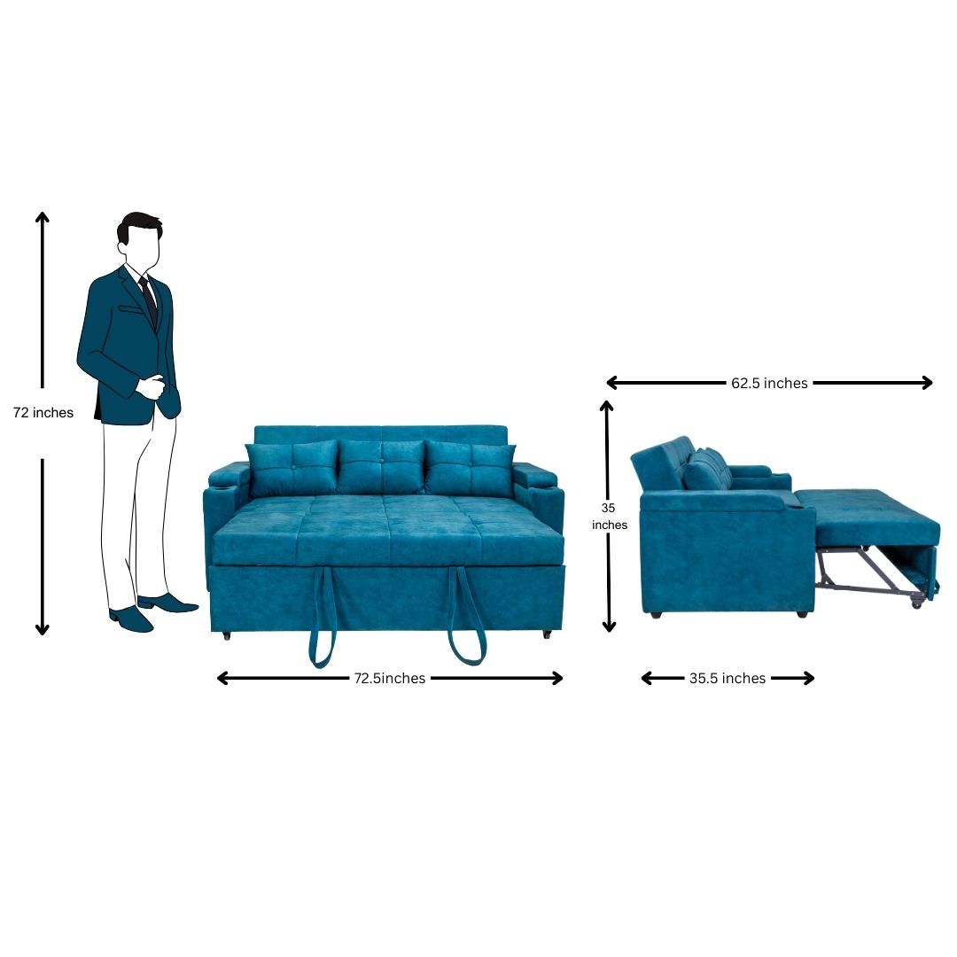 Stockholm Pro Contemporary Fabric Sofa Cum Bed with Adjustable Back - Blue